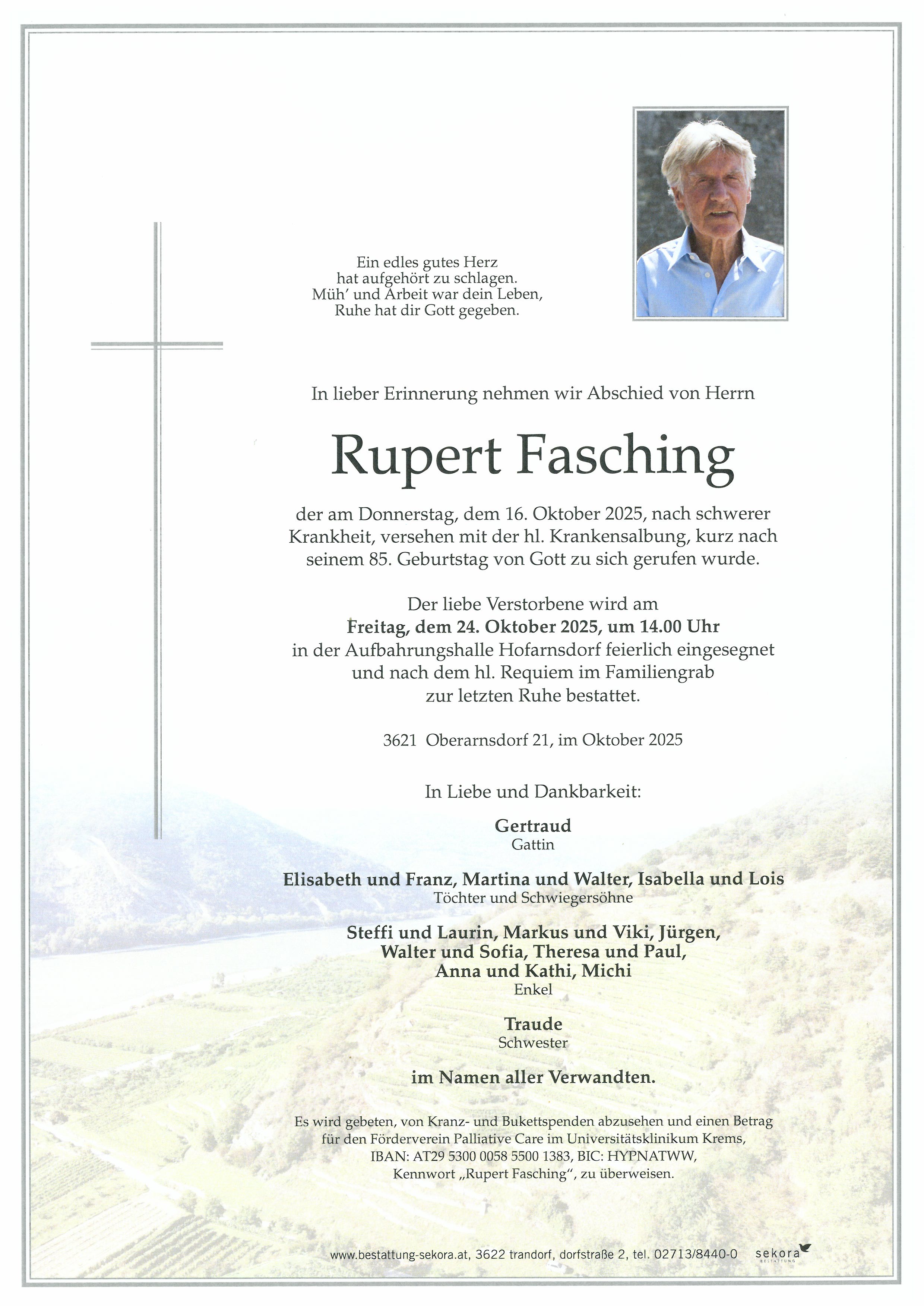 Fasching Rupert 10. Okt. 1940 - 16. Okt. 2025