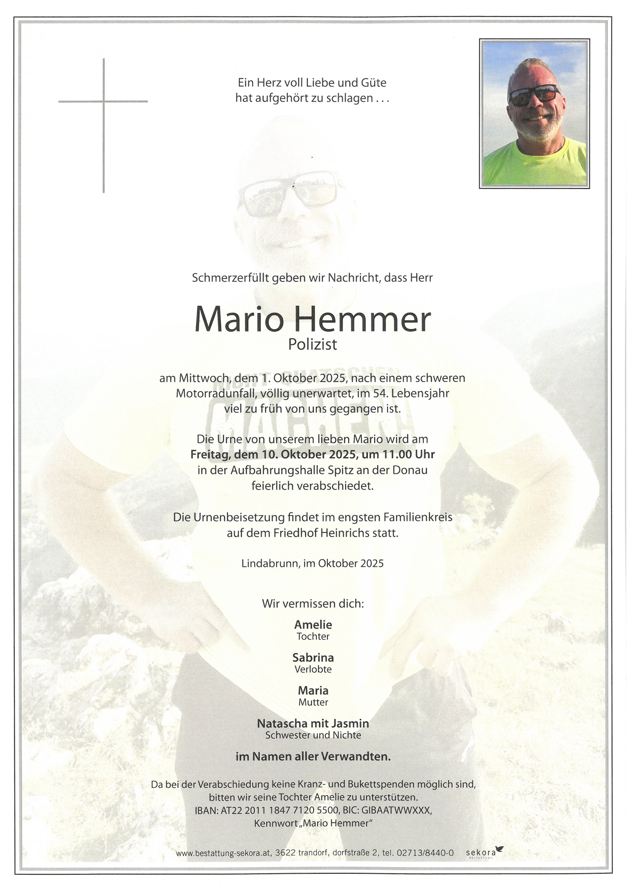 Hemmer Mario 5. Apr. 1972 - 1. Okt. 2025
