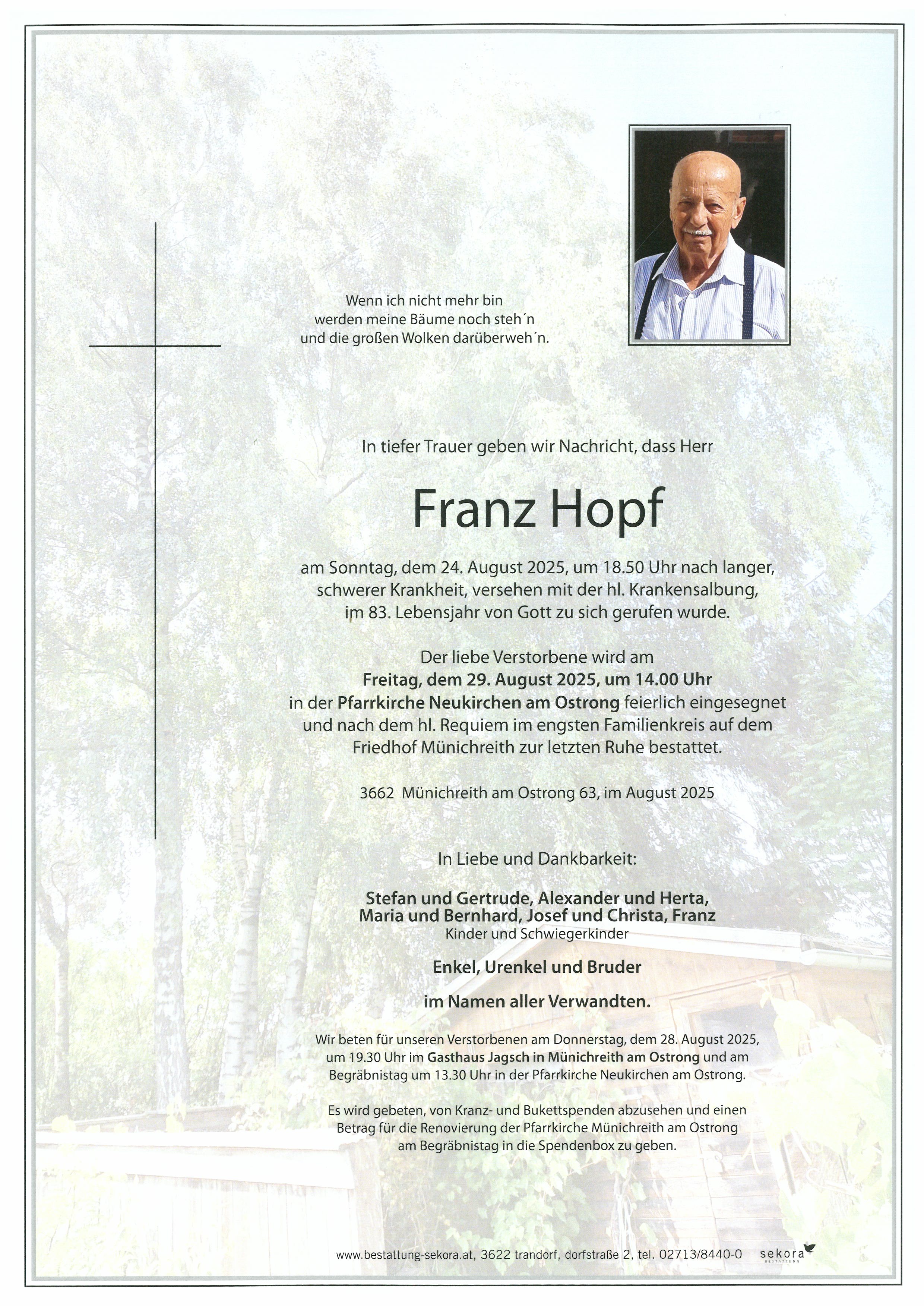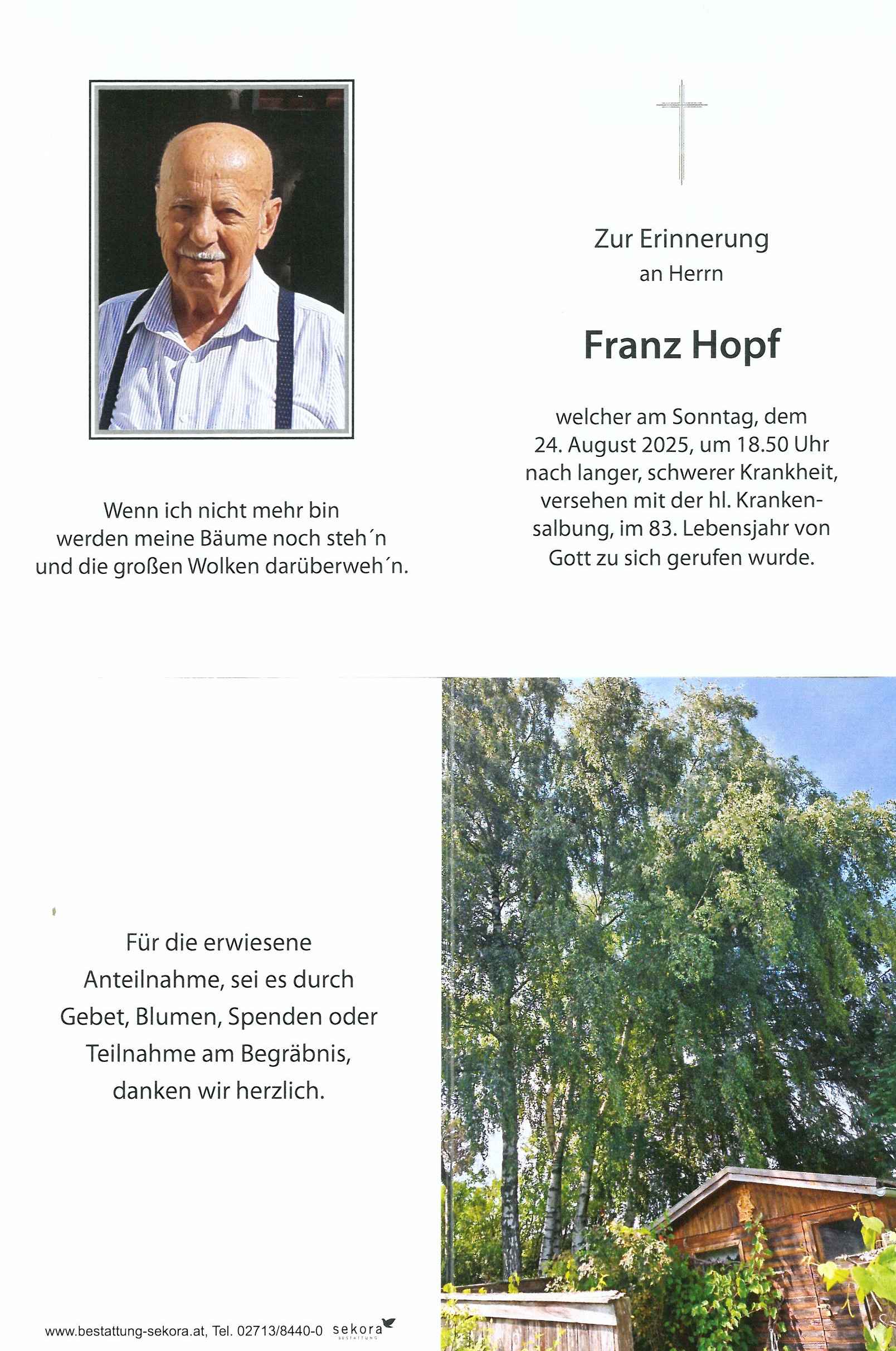 Hopf Franz 12. Nov. 1942 - 24. Aug. 2025