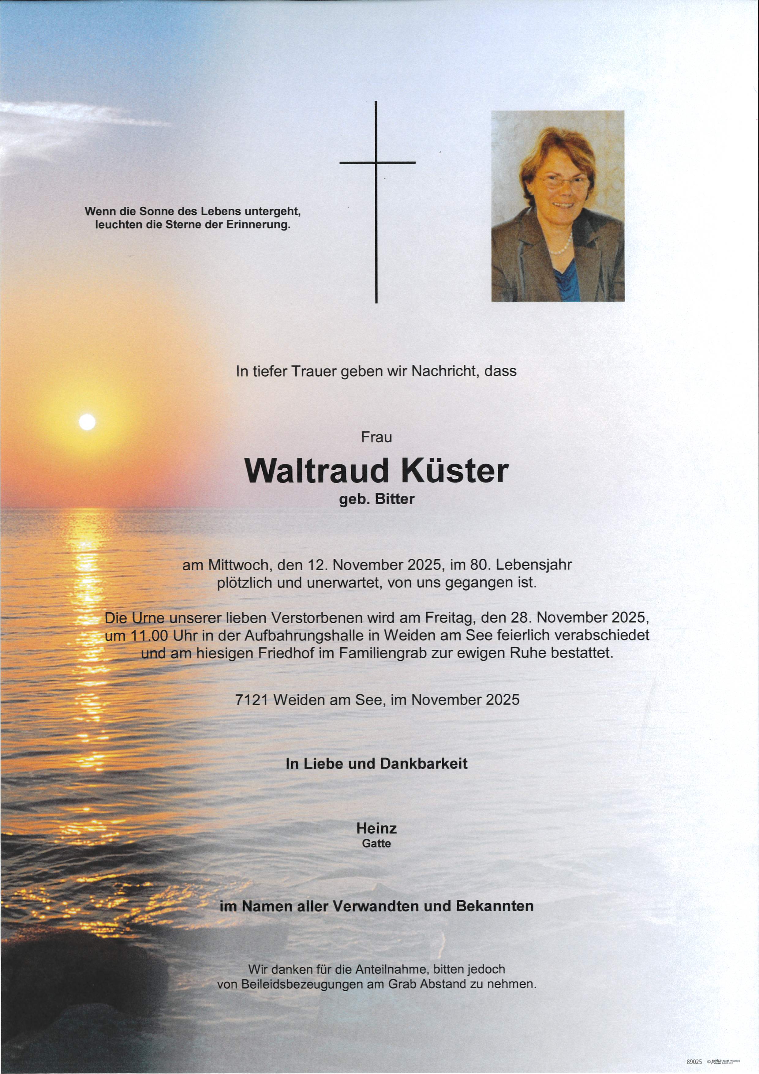 Küster Waltraud 28. Jan. 1946 - 12. Nov. 2025