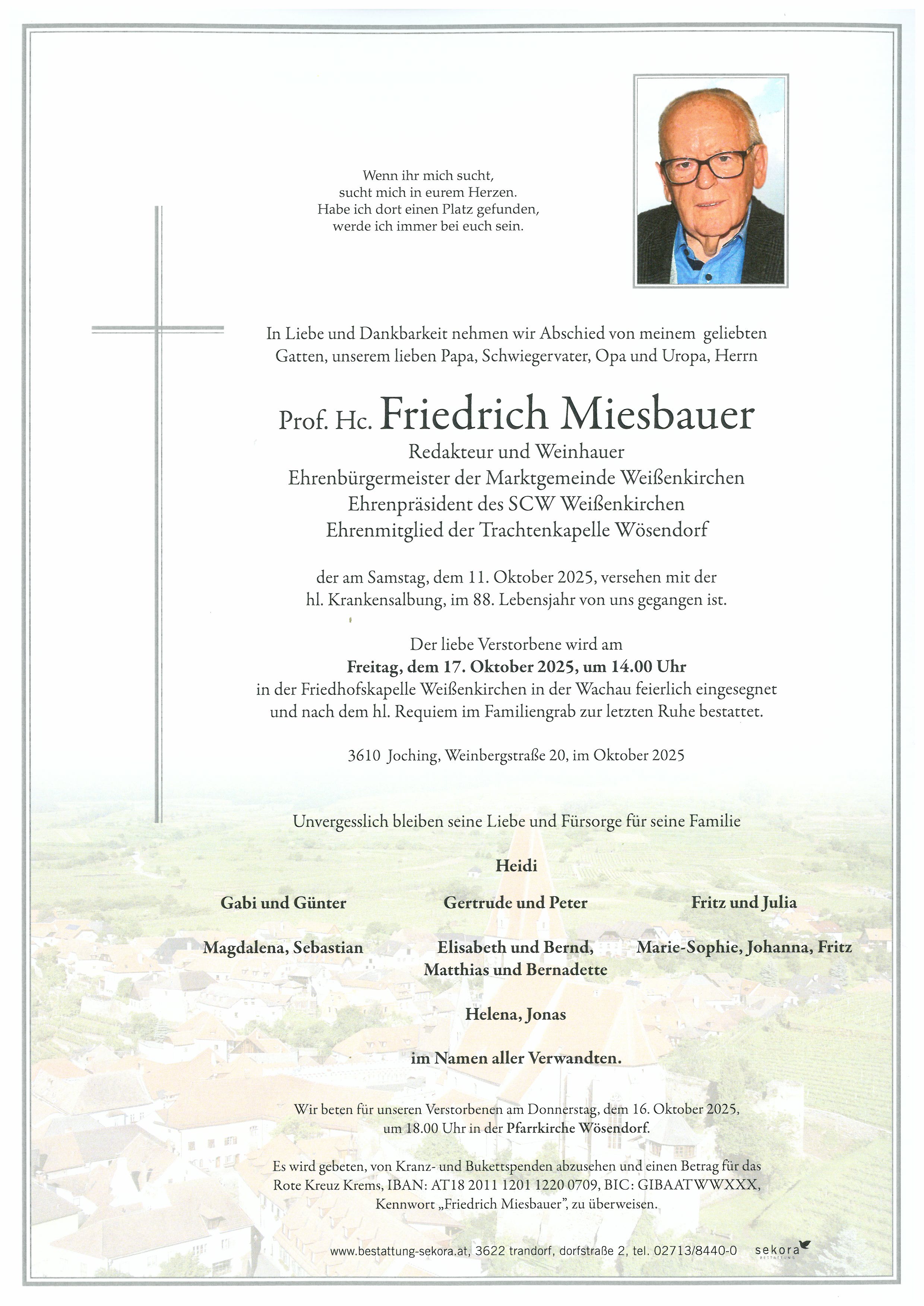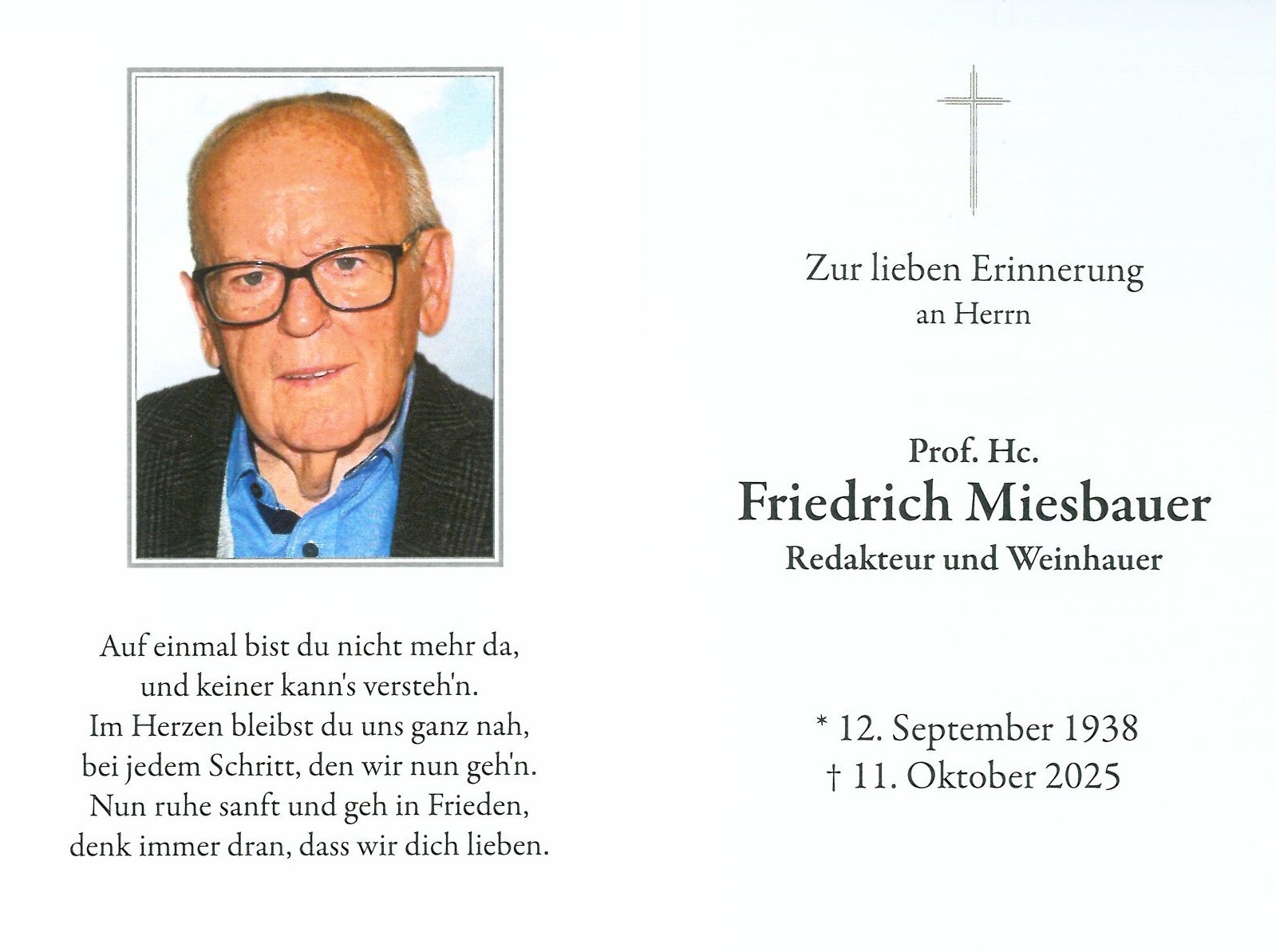 Miesbauer Friedrich 12. Sep. 1938 - 11. Okt. 2025