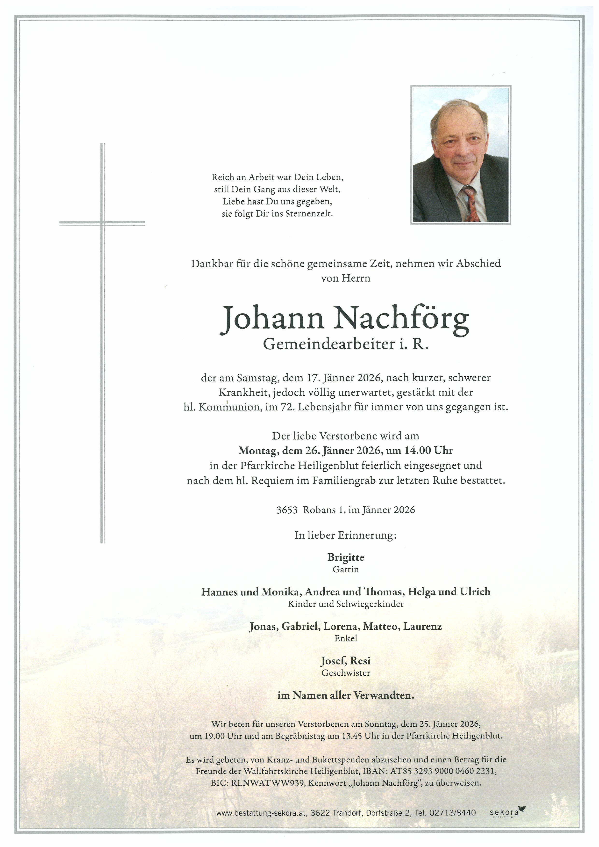Nachförg Johann 14. Juli 1954 - 17. Jan. 2026