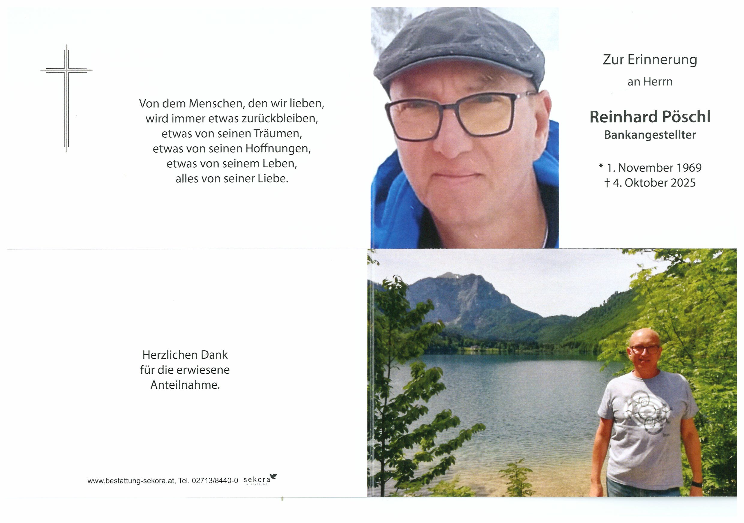 Aufrichtiges Beileid an die Trauer Familie. Ruhe in Frieden Reini. Wir werden dich nie Vergessen Rudi, Lisi und Michaela Peschl