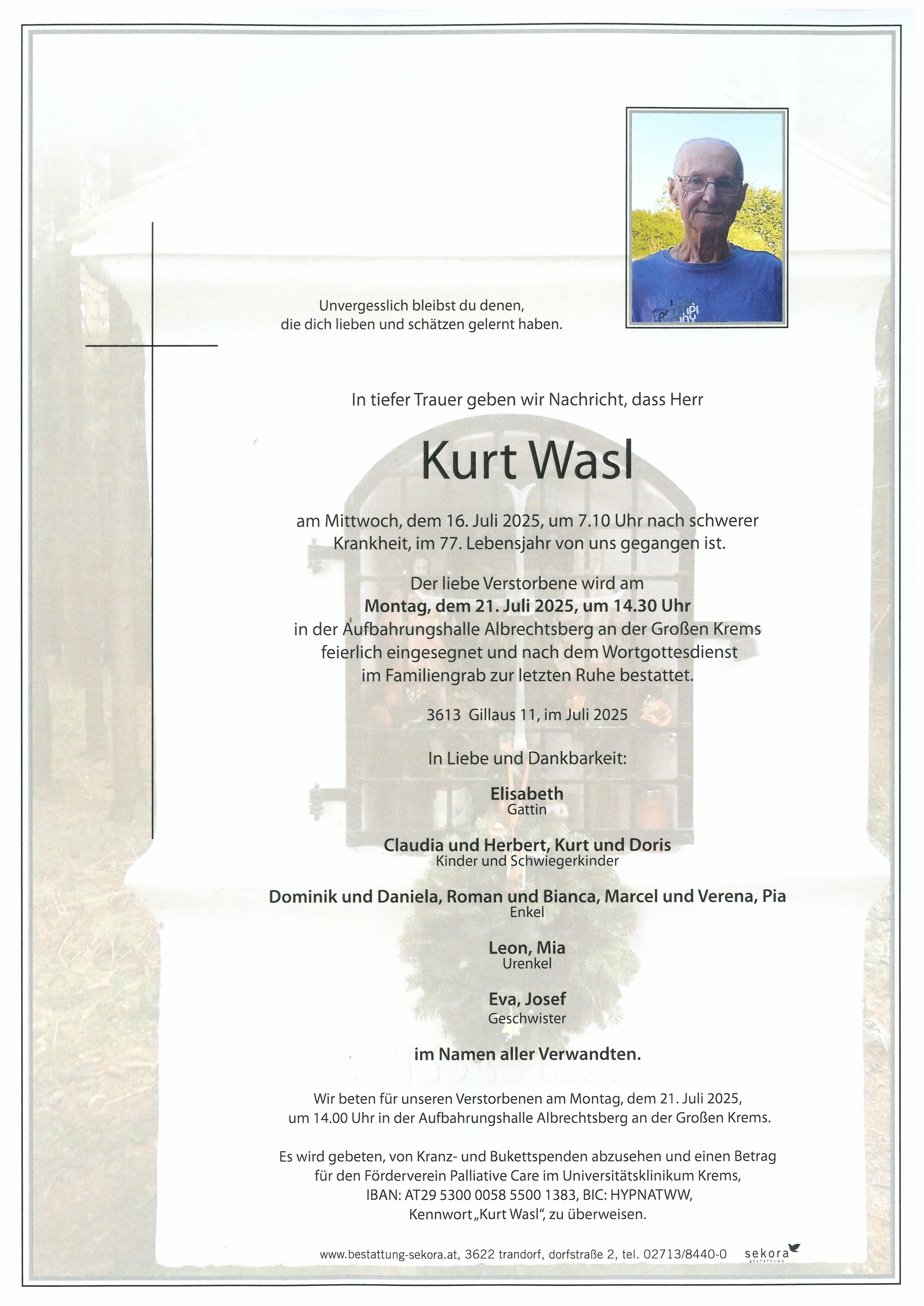 Wasl Kurt 21. Juli 1948 - 16. Juli 2025